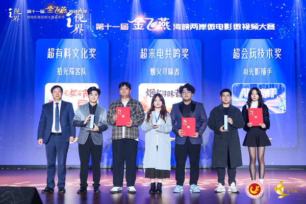 本届大赛自4月启动以来,共收到两岸40多所高校600余部作品,其中203部来自台湾地区。经评审,60部作品入围,《在细雨中呼喊》荣获最高奖“金飞燕奖”;《台北一夜》《山河同渡》获“银飞燕”奖;《默数》《托举》《江江》获“铜飞燕”奖。最佳摄影奖、最佳编剧奖、最佳音效奖、最佳短视频奖、最佳男主角、最佳女主角、最佳导演奖等单项奖同步颁发。“创作盲盒行动”单元更以超有料文化奖、超来电共鸣奖、超会玩技术奖等别致奖项,致敬青年创意的多元绽放。参与盲盒创作的台湾青年感慨万千:“从抽中创作盲盒行动的主题到与大陆伙伴并肩作战,让我们在共同的文脉中,感受彼此的理解和靠近。”