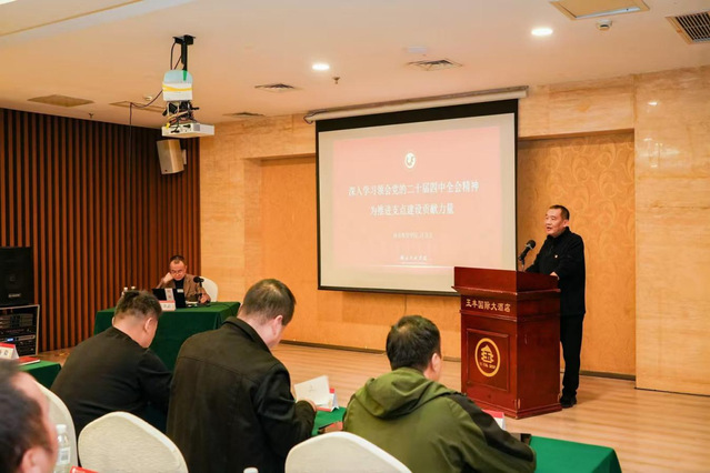 当日下午,学院党委书记汪奇志以《深入学习领会党的二十届四中全会精神,为推进支点建设贡献力量》为题,为学员们带来了一场思想深邃、内涵丰富的专题党课。汪书记的讲解高屋建瓴、旁征博引,既立足理论高度解读全会精神的核心要义,又紧扣湖北发展实际剖析时代使命,引导学员们在学思践悟中找准角色定位、明晰奋斗方向。培训班临时党支部书记吴熙、青年委员李煜惺结合自身军旅经历与课堂感悟,分享了学习心得,言语间满是投身地方建设的豪情与担当。学院院长助理杨毅对党课作总结发言,勉励全体学员要持续深化对党的创新理论的理解把握,做到学思用贯通、知信行统一,将培训所学转化为服务地方发展的过硬本领,在新征程上书写崭新答卷。