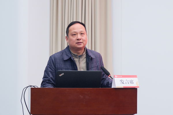 校党委副书记、副校长付宏以《面向“十五五”的湖北经济学院“1341530”学科体系建设研究》为题,从规划引领与政策机遇、“1341530”学科体系内涵和学科体系建设“四大工程”等三个方面对我校未来学科体系建设路径进行了系统阐述。